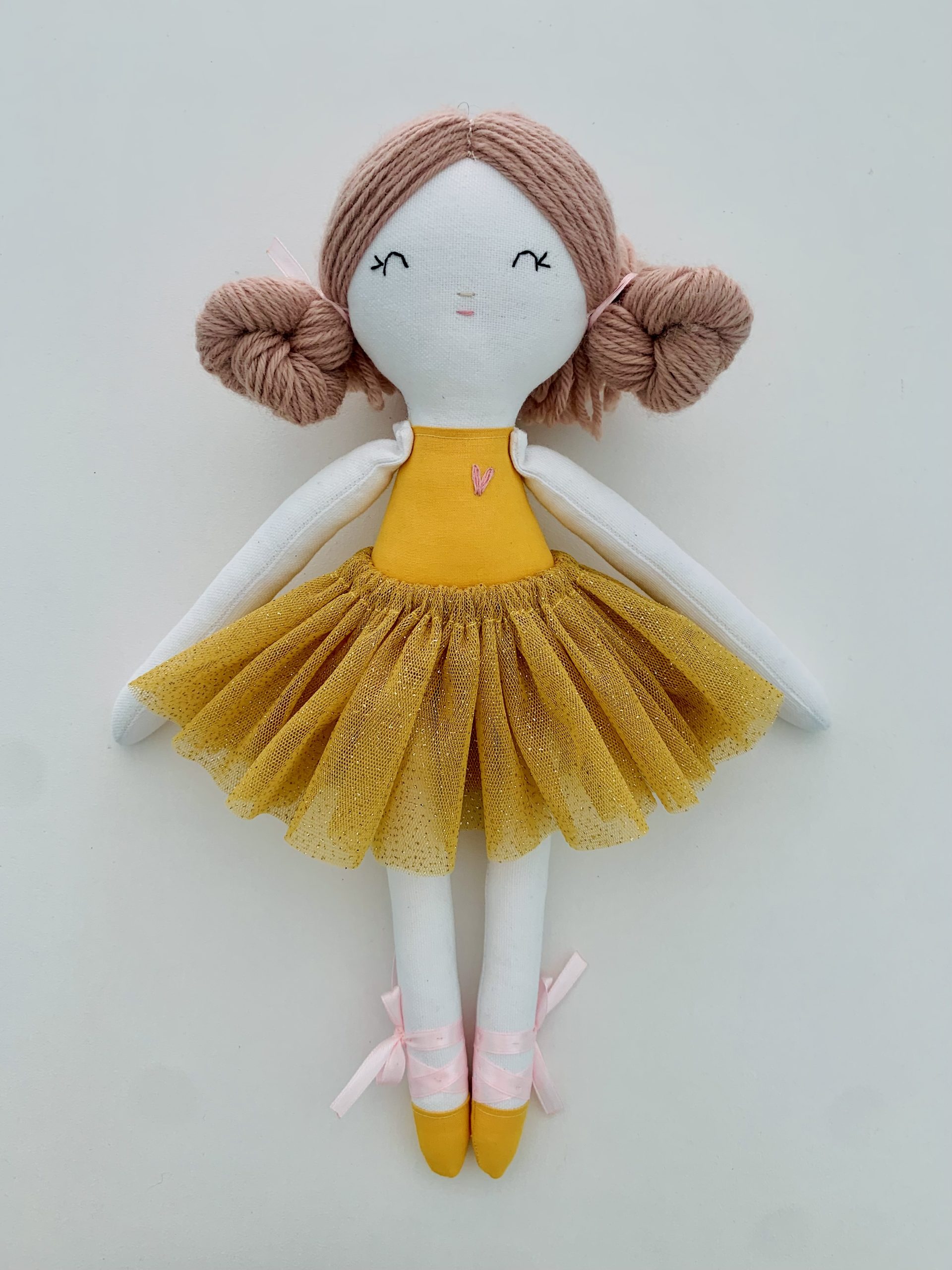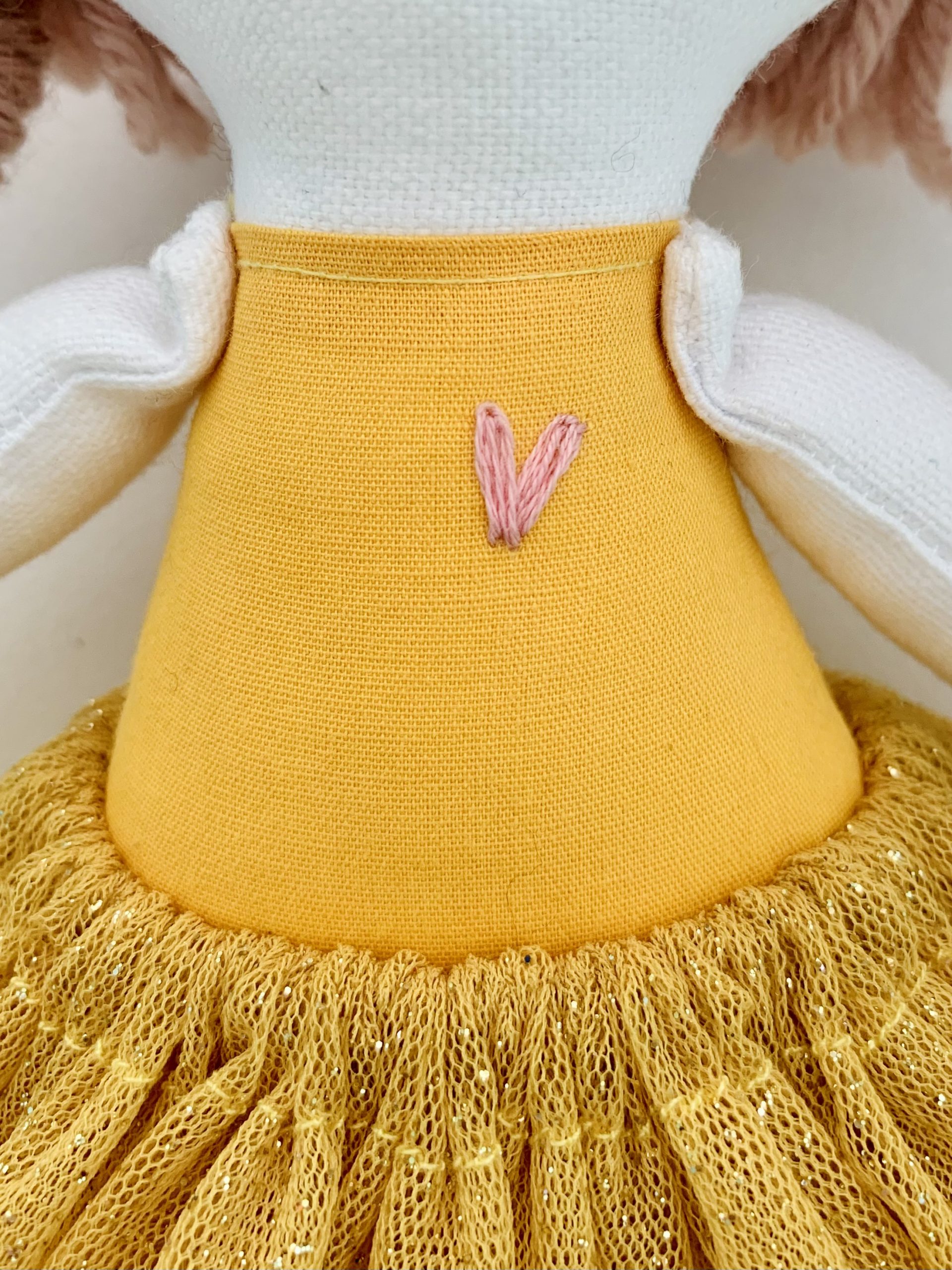 Doll body is made from 100% cotton fabric.